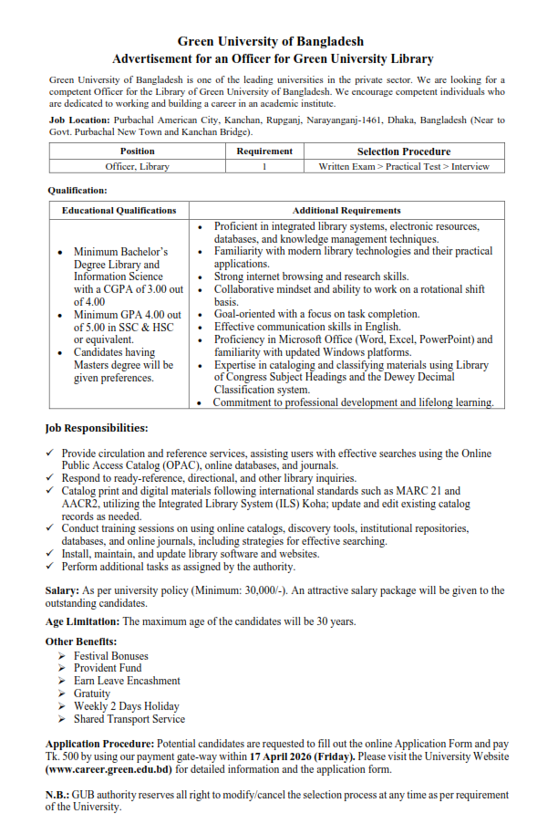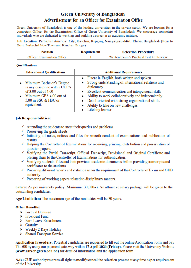 Career || Green University of Bangladesh © 2026 . All Rights Reserved.
